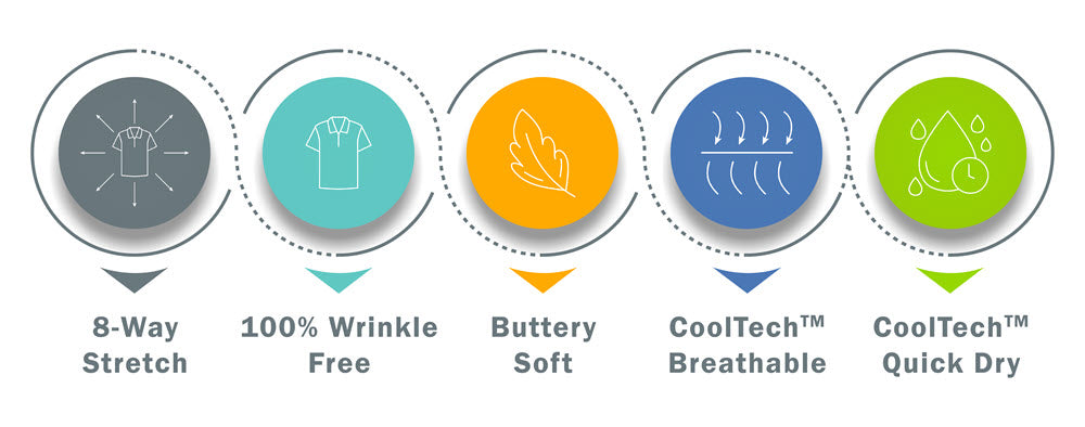 - CoolStretch™ moisture management technology